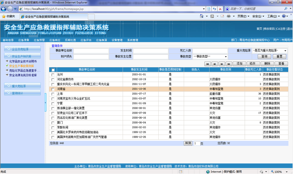 主要管理危險化學(xué)品安全技術(shù)說明書、安全生產(chǎn)事故案例、危險化學(xué)品應(yīng)急速查手冊、安全法律法規(guī)及標準庫,安全法規(guī)庫管理安全應(yīng)急相關(guān)的法律法規(guī)。