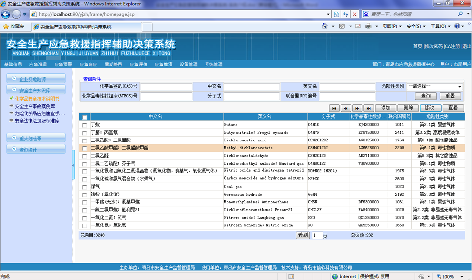 按照【GB 16483-2000 化學(xué)品安全技術(shù)說明書編寫規(guī)定】進行危險化學(xué)品信息采編,并導(dǎo)入常見化學(xué)品3000多條數(shù)據(jù)。
