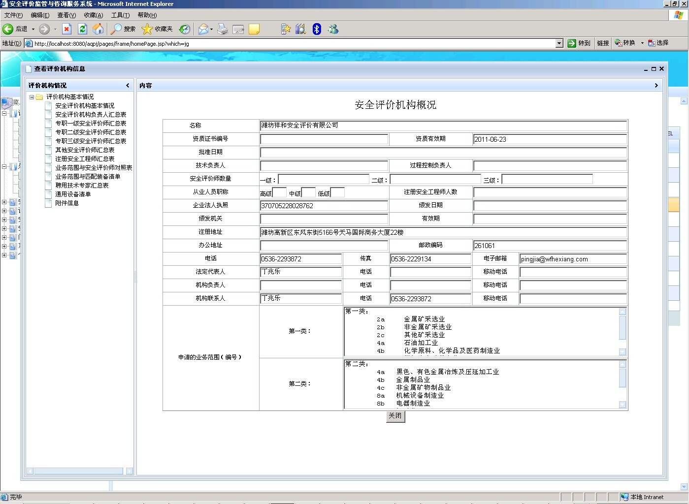 對安全評價機構(gòu)資質(zhì)及業(yè)務(wù)范圍進行監(jiān)管,完成資質(zhì)的申請、變更、補發(fā)、延期、注銷的業(yè)務(wù)辦理,向社會公布評價機構(gòu)名單,省外評價機構(gòu)的備案,防止監(jiān)管評價機構(gòu)在其許可的業(yè)務(wù)范圍外進行安全評價活動,建立全省安全評價機構(gòu)監(jiān)管數(shù)據(jù)庫。