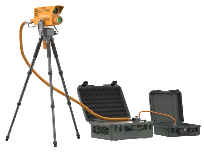 光學破拆裝置內(nèi)置高能光纖激光器,能夠從地面發(fā)射激光對鋼板、鋁板、鋼筋、彩鋼瓦、樹木、塑料、馬蜂窩等進行遠距離切割清除。