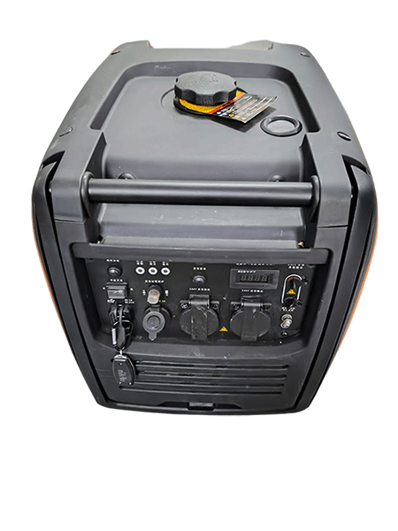 輸出功率為4千瓦,具備手拉啟動(dòng)、電啟動(dòng)和遙控啟動(dòng)三種啟動(dòng)方式。機(jī)身設(shè)有旋轉(zhuǎn)開(kāi)關(guān)、手拉柄、加機(jī)油口等。配備消音器及防燙護(hù)罩,帶有兩個(gè)輪子,方便移動(dòng)。面板上有兩個(gè)USB插孔、一個(gè)點(diǎn)煙器12V輸出、兩個(gè)230V輸出通用五孔插座、一個(gè)電壓表以及交流輸出兩個(gè)插孔和接地螺絲。