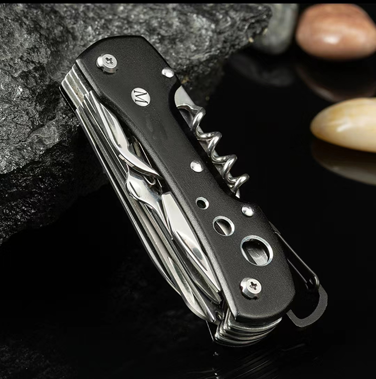 多功能刀又常稱為多功能戶外刀或萬(wàn)用刀,是含有許多工具在一個(gè)刀身上的折疊小刀。多功能刀的組合工具不僅表現(xiàn)在品種上,同時(shí)還在于巧妙的組合在同一種工具上,使有限的工具發(fā)揮更多的實(shí)功能。一把普通的多功能刀,一般都有主刀、小刀、剪刀、開(kāi)瓶器、木鋸、小改錐、拔木塞鉆、牙簽、小鑷子等工具。而在一些工具上還設(shè)計(jì)了多種功用。