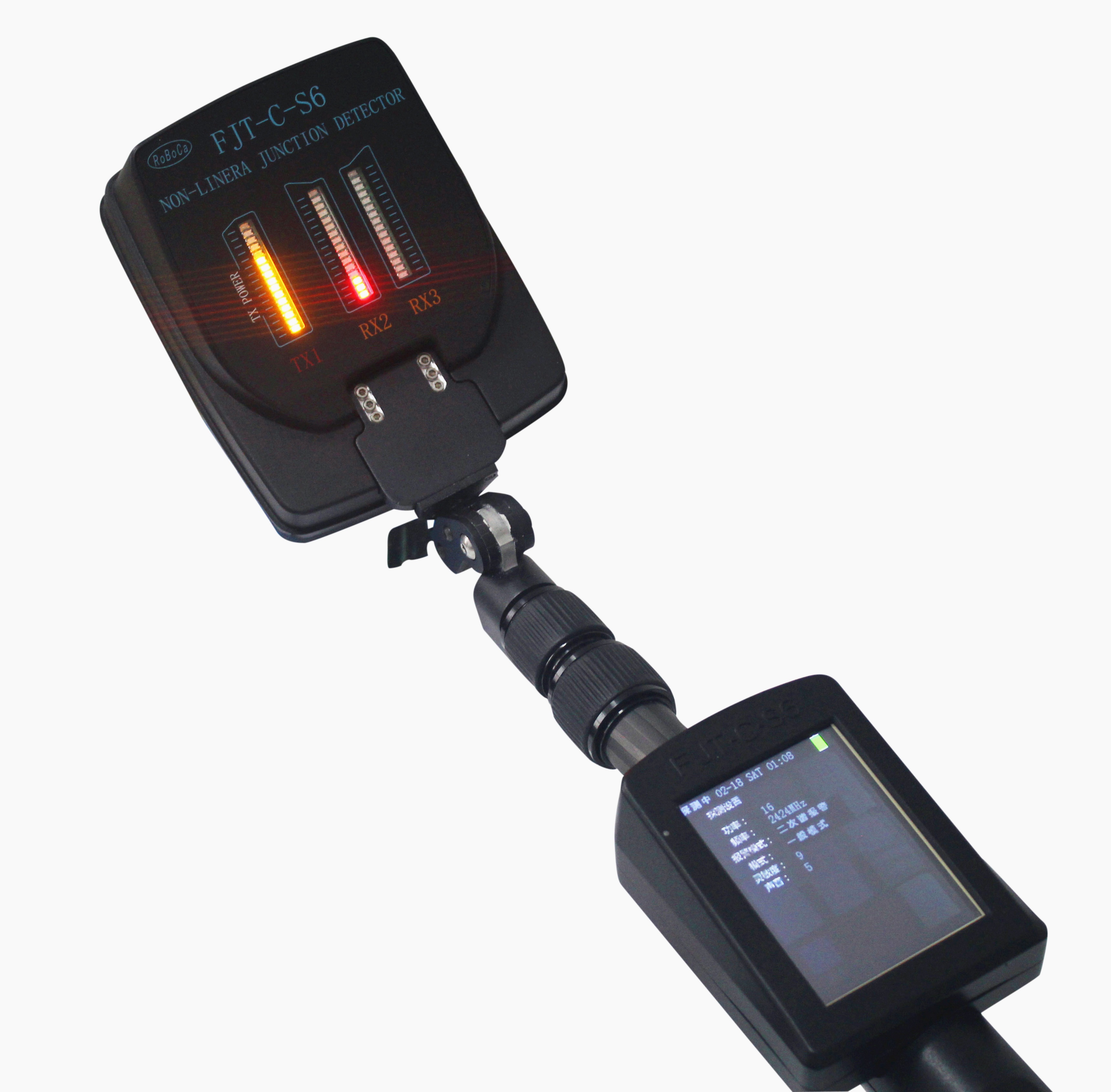 FJT-C-S6非線性節(jié)點探測儀是一款重要的可快速可靠探測半導體和金屬物體裝置的設備,專用于特種部門的工作人員檢查房間屋室內(nèi)等空間,用來排查可疑目標及未知的封裝包裹或物體內(nèi)的半導體和金屬物體裝置(炸彈起爆器或者竊聽器等)。