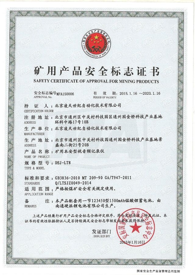 北京凌天防爆執(zhí)法記錄儀取得3c強制性認證、化工防爆、煤礦防爆、MA