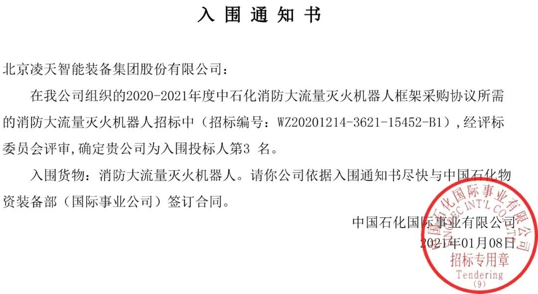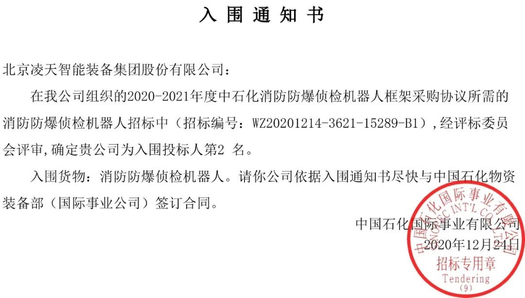 【招募合作伙伴】北京凌天消防機(jī)器人中標(biāo)入圍中石化框架采購目錄,歡迎石化領(lǐng)域合作伙伴