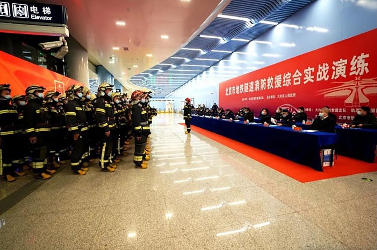 為全力做好2022年春運(yùn)服務(wù)保障工作,防范化解重大安全風(fēng)險(xiǎn),聚焦“全災(zāi)種、大應(yīng)急”救援需要和地鐵隧道火災(zāi)滅火救援處置能力,1月21日凌晨,北京市全要素地鐵隧道火災(zāi)滅火救援綜合實(shí)戰(zhàn)演練在北京地鐵大興機(jī)場線大興新城地鐵站開展。整個(gè)演練調(diào)集了10個(gè)消防支隊(duì)、52部消防車、248名消防救援人員參與。北京凌天2臺(tái)消防內(nèi)攻偵察機(jī)器人參與到此次演練中。