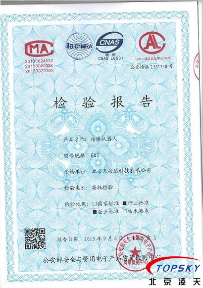 ER3排爆機(jī)器人取得公安部檢測報(bào)告