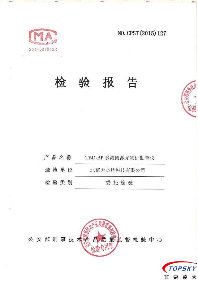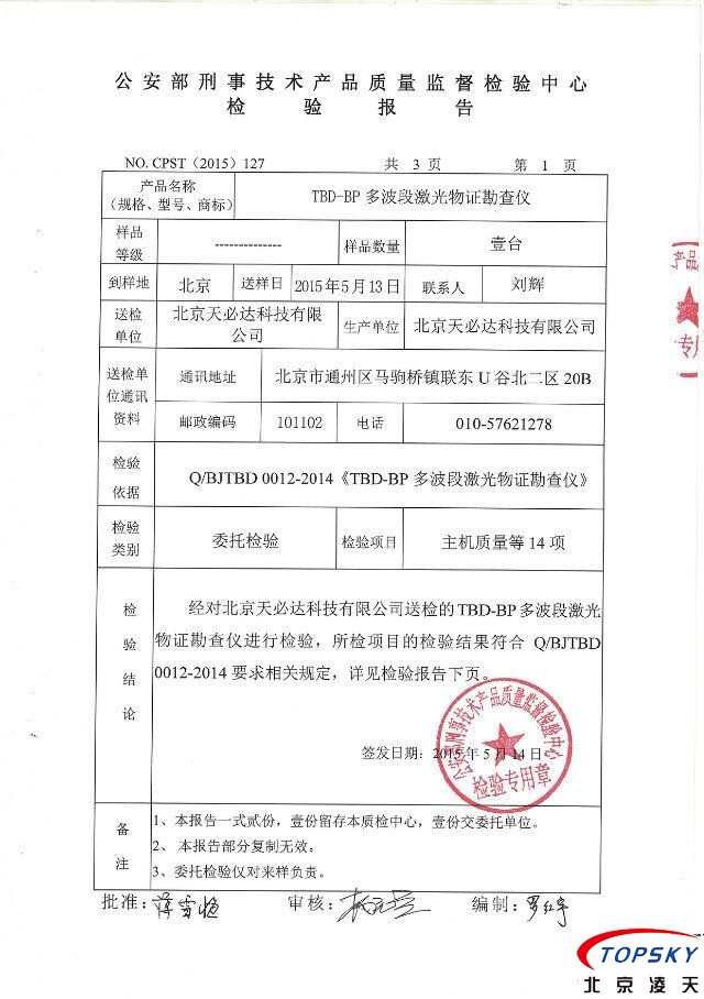 北京天必達(dá)自主研發(fā)多波段激光物證勘察儀取得公安部檢測報(bào)告