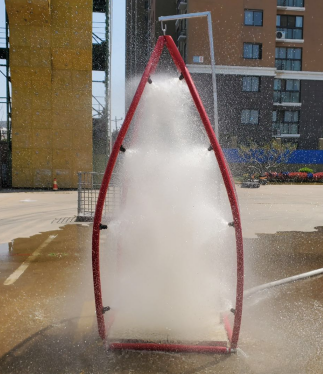 簡易洗消噴淋器適用于部隊?wèi)?zhàn)士進(jìn)行化學(xué)事故處理后,在極端惡劣的環(huán)境下的臨時應(yīng)急洗消、消毒的可折疊有效的簡易裝置。該裝置整體設(shè)計合理、安全,適合在狹小的空間或野外使用,可以利用周邊環(huán)境,對其進(jìn)行吊裝固定。外部水源通過水帶接入,形成回路,水通過水帶上的噴嘴噴射到人體上,形成環(huán)形包圍立體包裹,進(jìn)行臨時的應(yīng)急洗消的作用。水壓可根據(jù)進(jìn)水的高低噴射的效果會不同,對人員服裝或體表進(jìn)行洗