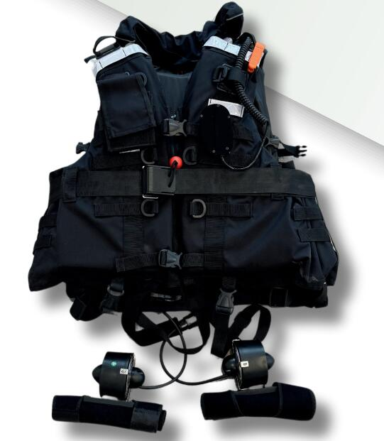 戰(zhàn)術(shù)動力激流救生衣是一種集成浮力設(shè)備和動力裝置的水面救生輔助裝備,能夠為救援者提供額外推進力和穩(wěn)定性,輔助救援人員快速抵近、高效救援,保障作業(yè)安全、提高作業(yè)效率。