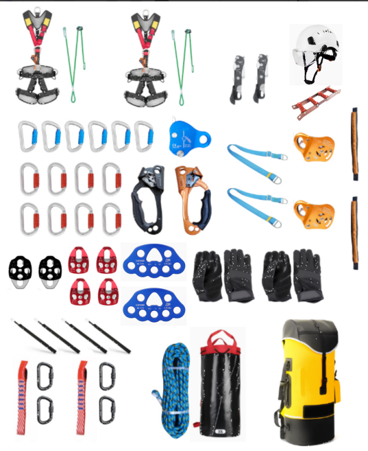 用于輔助救援人員進(jìn)行攀爬以及搭建救援通道搶救和運(yùn)送傷員。包含繩索手套、山岳救援頭盔、頭燈、護(hù)目鏡、全身式安全吊帶、安全繩、安全鉤、上升器、抓繩器、下降器、滑輪、連接帶、 緩沖器等。