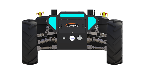 差速輪式機(jī)器人底盤采用鋰電池電源作為機(jī)器人動力源,使用無線遙控的方式遠(yuǎn)距離操控機(jī)器人,并可定制復(fù)雜的操作模式,主控提供串口/標(biāo)準(zhǔn)CAN總線作為通訊接口。整機(jī)采用四輪獨立驅(qū)動、四輪差速轉(zhuǎn)向以及前后雙橫臂獨立懸架結(jié)構(gòu),具有IP65防塵防水能力,能夠在多種復(fù)雜環(huán)境運(yùn)行。同時,整機(jī)采用模塊化設(shè)計,四獨立懸掛、左右電控箱及電池可快速拆卸維護(hù)更換??纱钶d多種設(shè)備從而代替人進(jìn)行高效率作業(yè)。