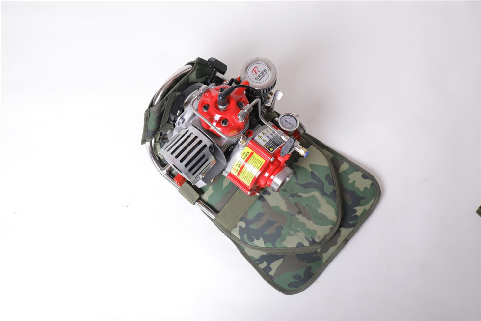 ⑿配有兩套專用水泵和油箱的雙肩高檔背包,更方便攜帶和翻山越嶺的行軍,此背包可以快速拆卸,避免背帶系統(tǒng)接觸水源,防止消防員背負(fù)時(shí)弄濕衣服,冬季可減少衣服和背包結(jié)冰的幾率。