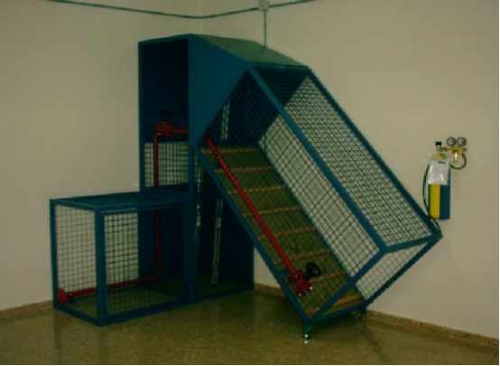 此裝備可以模擬各類尺寸偏小的坡度可變的巷道(0-45度),巷道內(nèi)行進(jìn)方式為爬行或者側(cè)行根據(jù)巷道擺放形式不同,內(nèi)部采用摩擦系數(shù)較大的塑膠鋪成,方便人員行動(dòng)。外側(cè)有手扶爬梯,人員在下部進(jìn)入上部走出進(jìn)行計(jì)量,可以自動(dòng)計(jì)算人員規(guī)定時(shí)間內(nèi)的行走次數(shù)。