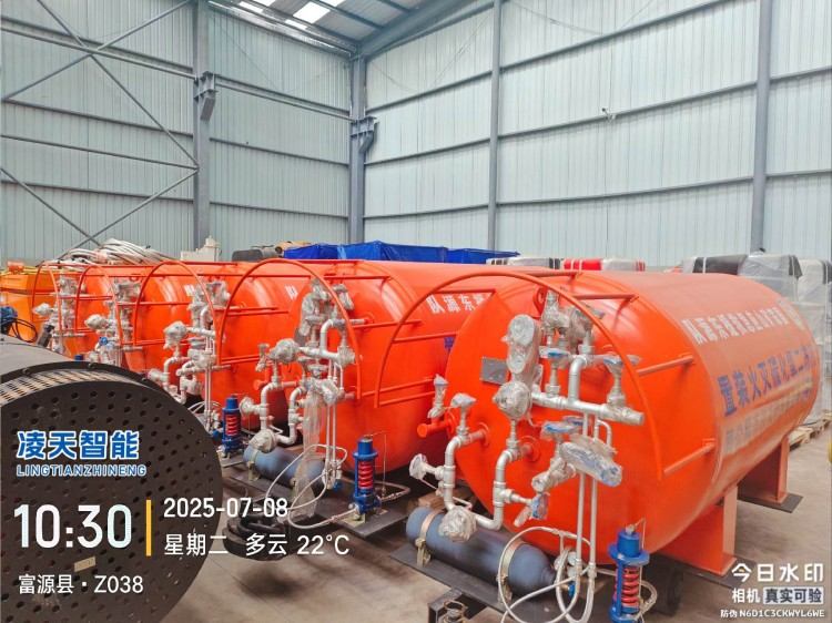 液態(tài)二氧化碳滅火裝置,采用平板車為運(yùn)載平臺,搭載液態(tài)二氧化碳滅火模塊,采用液態(tài)二氧化碳為滅火劑,運(yùn)輸至井下火區(qū)近附,經(jīng)自增壓調(diào)控系統(tǒng)實現(xiàn)罐內(nèi)穩(wěn)壓,并通過遠(yuǎn)距離輸送管路將液體從罐內(nèi)向密閉火區(qū)噴射,利用其急速膨脹氣化和吸熱效率高的物理特性,可實現(xiàn)惰性降氧,吸熱降溫,吸附阻化等功能,從而可快速進(jìn)行井下煤層自燃火災(zāi)的預(yù)防與撲滅等。