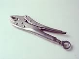 大力鉗是由鋼板制作,調(diào)整螺桿端配有一個(gè)吊環(huán),鉗口尺寸是可調(diào)整的。根據(jù)夾持物的大小,應(yīng)事先調(diào)整鉗口尺寸,右旋螺桿鉗口變小,但不能<170mm, 不然夾持功能失效。夾鉗在夾緊物體之后能被鎖緊,用繩索滑輪和吊鉤可將其牽引。