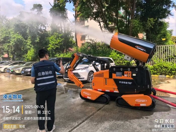 遙控器按鈕能遠程調節(jié),自由控制行駛速度和水炮,滿足現(xiàn)場實際需要。