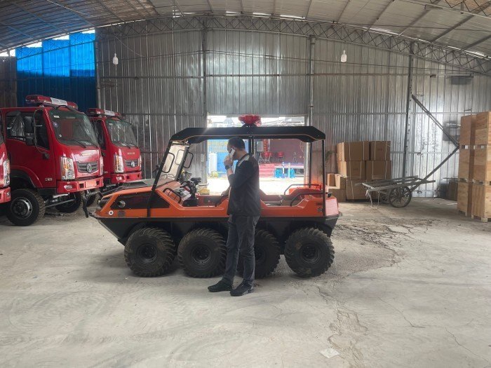 在復雜惡劣的地形條件和自然環(huán)境下,水陸兩棲全地形車可以讓搜救隊員和攜帶的救援裝備快速到達救援現(xiàn)場,減少徒步帶來提供消耗,完成最后一公里最好五分鐘緊急救援任務。水陸兩棲全地形車可配備點到絞盤、救援擔架組件、探照燈、警示燈、警報器、脫鉤、破拆工具等裝備, 給救援團隊提供救援保障,更安全的解救傷員和疏散群眾。