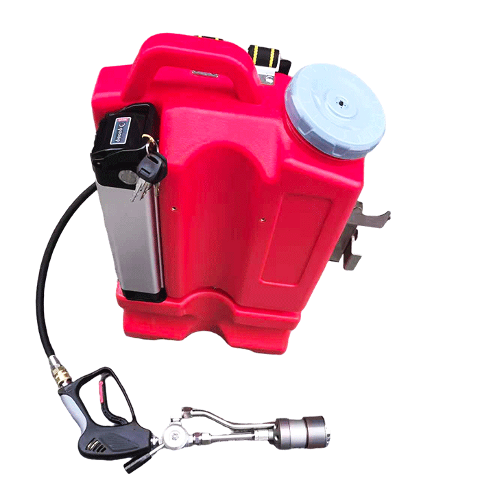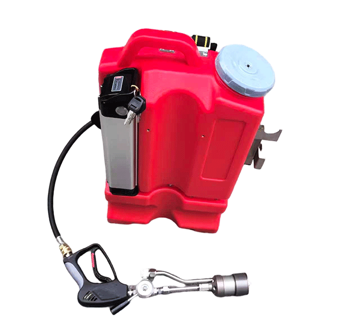 本產品是電機驅動水泵產生一定壓力的水流,通過對水流壓力和流量的控制后,再通過可產生細水霧的專用噴槍噴出進行滅火的裝置。改裝置設置了限壓限流、缺水保護、欠壓提醒等多種保護。系統(tǒng)沒有壓力容器。徹底解決了使用壓力容器的安全隱患。