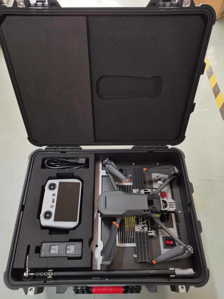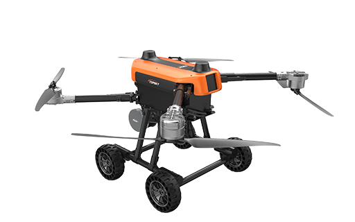 本無人機(jī)為北京凌天智能裝備集團(tuán)研發(fā)的陸空兩棲三維偵測建模無人機(jī),采用四旋翼機(jī)身設(shè)計,載重大,續(xù)航長,并且機(jī)體折疊標(biāo)準(zhǔn)化負(fù)載接口。同時,該無人機(jī)具備陸空兩棲功能,可以在地面行駛。